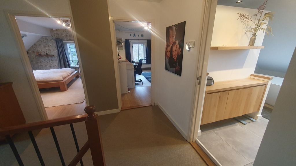 The house is about 250 sq. meters and also offers a 350 sq. meter private back garden. There are 4 bedrooms: one of the bedrooms is the master bedroom with oversized double bed (180 x210). Three of the bedrooms are currently in use by the kids (one of the rooms with an additional full size guest bed). In the attic, Sander's home office is located, with possibility for another one or two inflatable single beds.
