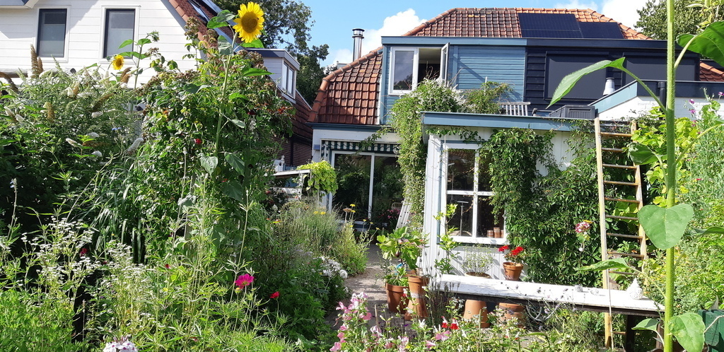 We have a sunny cottage garden with lots of flowers and even a little rooftop terrace for sunbathing. Have a look our garden through this link: https://www.youtube.com/watch?v=kzwsVXFexmo.