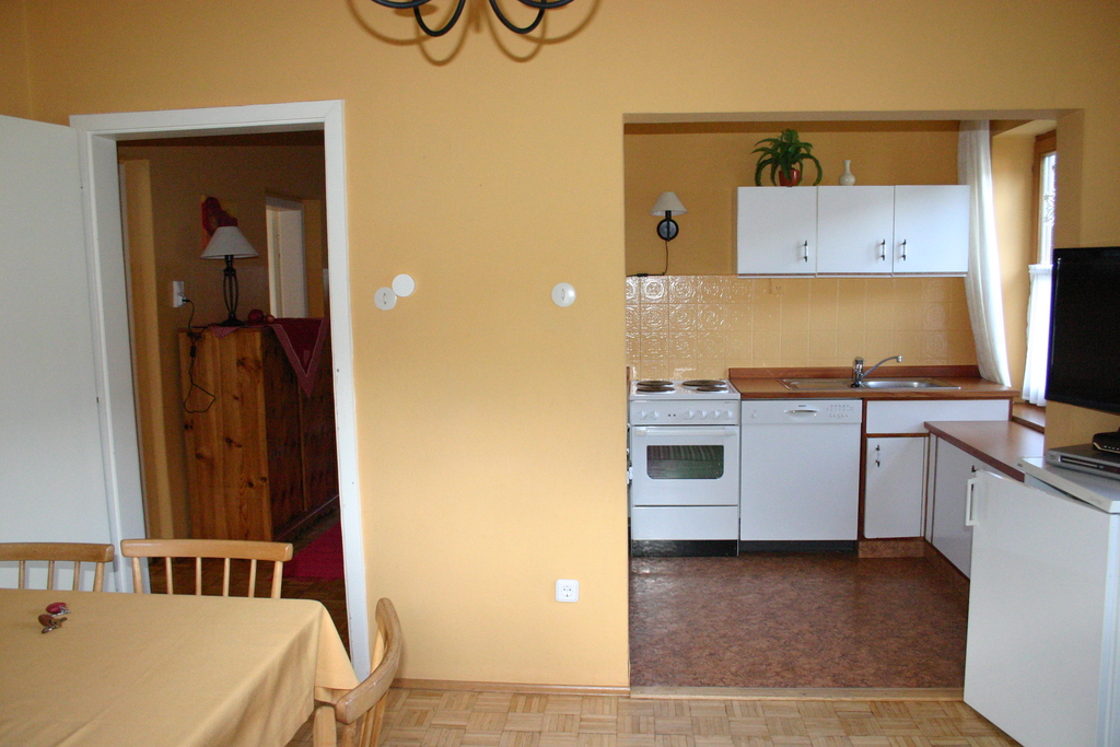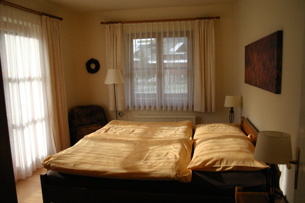 The holiday apartment is situated in a particularly quiet, sunny and central location (very near the thermal-Spa and ski-lift - you walk only few minutes). Wide green area (1,200 sq m) with playground and sunbathing lawn. south-west facing terraces and balconies with unobstructed view of the surroundings, garden furniture and deck chairs available, bed linen, table ware, kitchen and bath towels provided. Amenities: completely and functionally furnished apartments, featuring kitchenette with fridge, electric heating, three separate bedrooms for 6 persons, bath with wc and separate wc, satellite tv in the lounge.