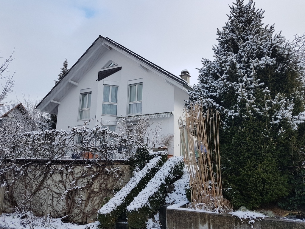 We live on a hill called "Schönberg" in the city of Fribourg in a quiet surrounding next to the countryside. We have a garden with table tennis, hammock and a barbecue. We have also 2 garages and 2 bikes. The house is just at the end of a one-way street. The neighbourhood is quiet and our house is convenient for the everyday shopping (15 minutes walk to the next supermarket). The bus (busstop at 150m) takes you every few minutes in 10 minutes to the center of Fribourg. You can also walk down in 20 minutes. walking back is a bit harder since it is all up hill.