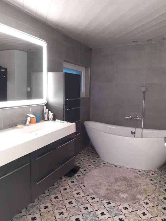 A l'extérieur, vous avez une terrasse,chaises longues, un four à pains, barbecue et un bain nordique.