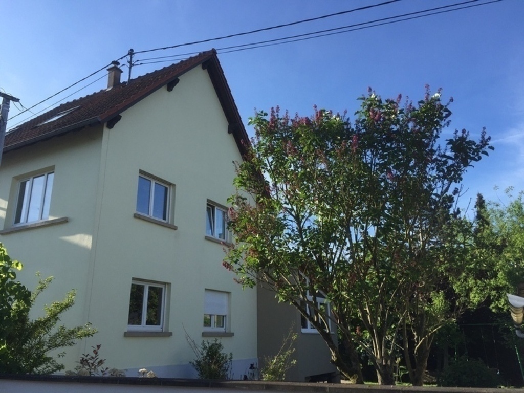 We live in a pleasant Alsatian village house, in a very quiet street, very close to Strasbourg (9km, quick access by road or very good train service in 9 minutes). When we moved in 13 years ago, we made a number of improvements to the house (new kitchen, extension of the house with a new, very bright living room, installation of a wood-burning stove...), and we continue to work on one room at a time almost every year. We feel very much at home here, and enjoy the garden in summer for playing and eating... It's very pleasant, and really quiet.