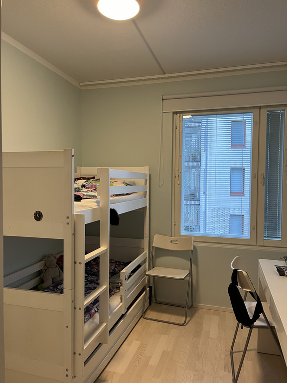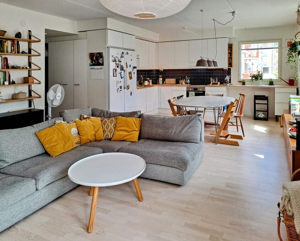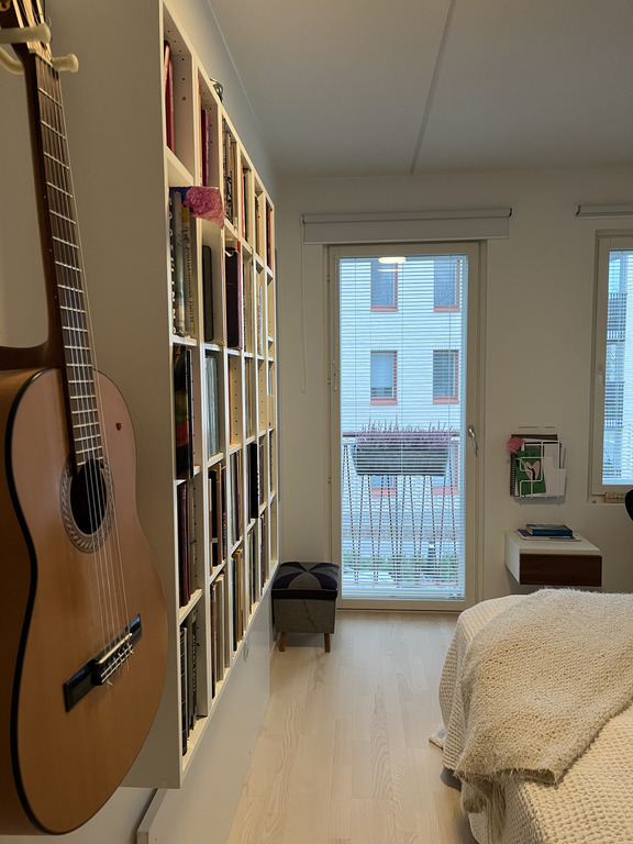 Our home is in Käpylä, a picturesque garden district only five kilometers from Helsinki city center. We live in a modern apartment, which can host up to six people. There are charming cafes, a public outdoor swimming pool, kid's playground, a grocery store and pharmacy all nearby. A direct bus line or tram takes you easily to the city center.
