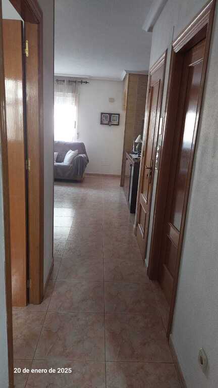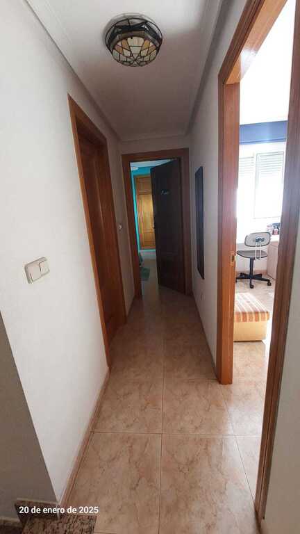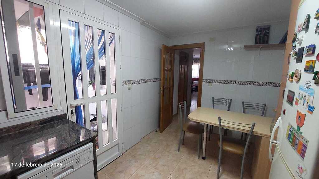 Es un dúplex, en la planta baja está el salón, un despacho, un aseo pequeño, la cocina y el patio interior y en la planta de arriba hay 3 habitaciones, 2 de ellas con cama de matrimonio y otra con 2 camas de 90cm. y 2 aseos completos. Tenemos un pequeño exterior que da a un parque con quiosco, que en verano está muy animado.