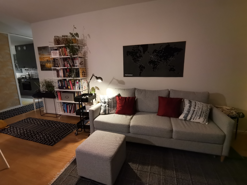 There are many shops (a shopping center), some restaurants and other services nearby within a walking distance. There are also really nice parks and forests around here where you can go walking or running. Nearest frisbee golf route is just 2,5 km from the apartment, as well as the nearest swimming place (a pond).