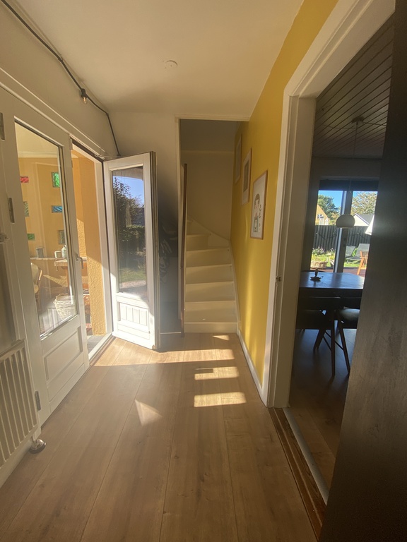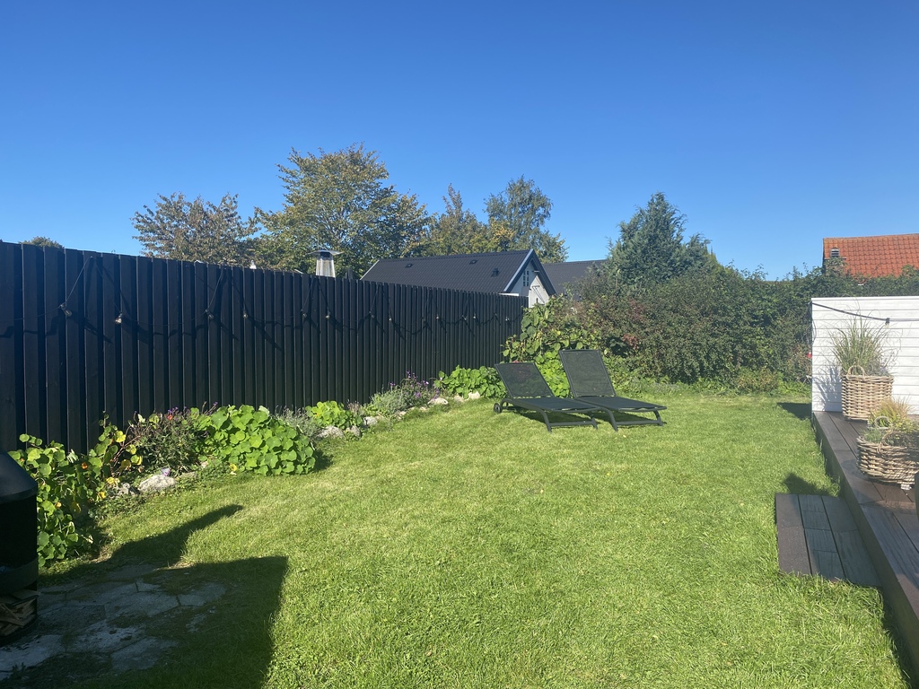 The house has a charming private garden with a large trampoline, a large wooden terrace, and a porch to relax at.