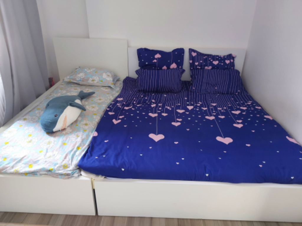 The apartment features two bedrooms with comfortable queen-size beds (160x200 cm), the main bedroom has a queen-size bed+a single bed( 100x200), an equipped kitchen, and a cozy living room that includes a sofa (150x190).