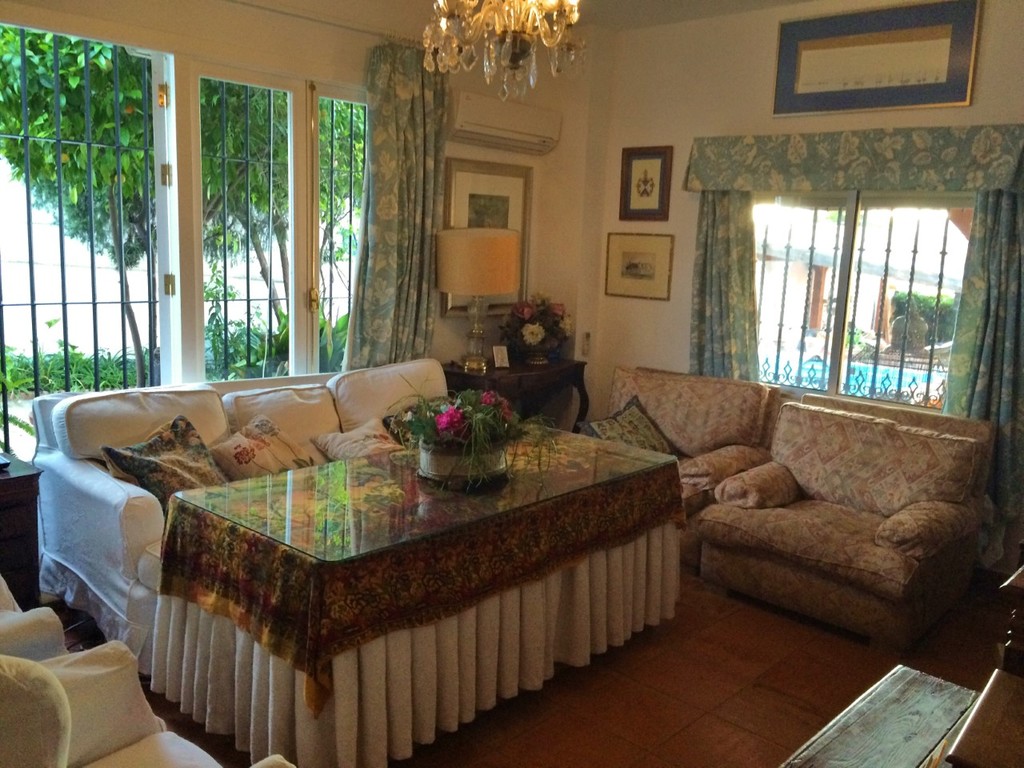 The house is surrounded by a lovely garden of 1.000 m2, with trees, and two areas with grass and lots of lovely flowerpots, we have our own swimming pool.