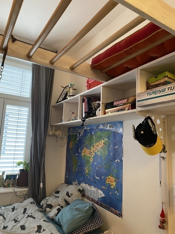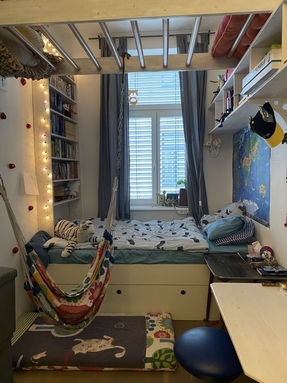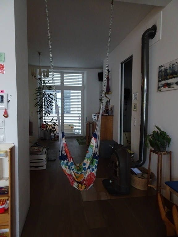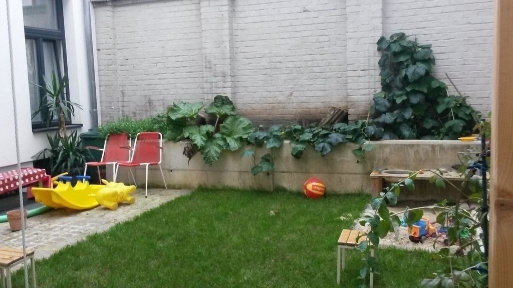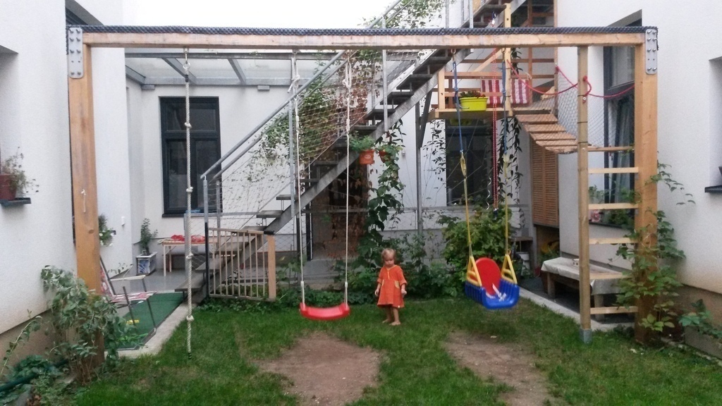 Our flat has a great balcony and we have an own garden with playground for the children and a children-house.