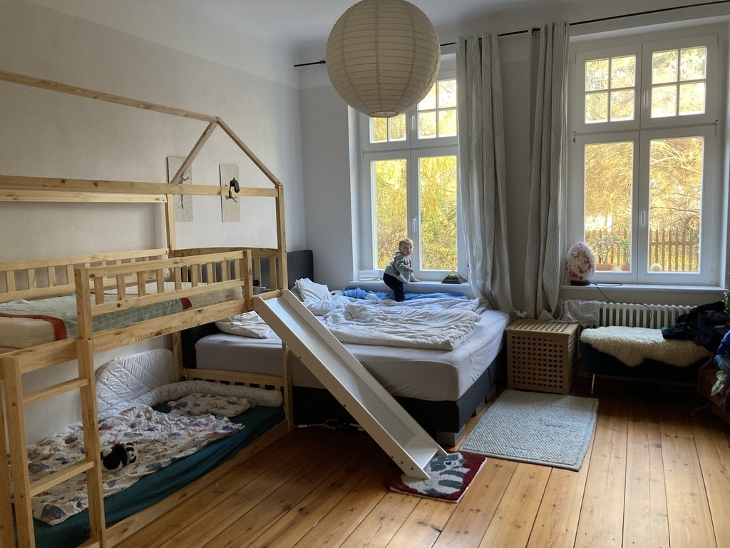 We are a family of four (Gustav, born 1 year and Nepomuk 3 years old) living in this beautiful bright 117 square meter large apartment in a lovely and excellent maintained house built in the beginning of the 20th century. We have a cosy large living room (with a large and comfortable sleeping couch), a big bedroom with a cosy 180x200cm boxspring bed, a very well equipped eat-in kitchen with modern cooking and oven facilities, a small but stylish bathroom with a huge walk-in shower.