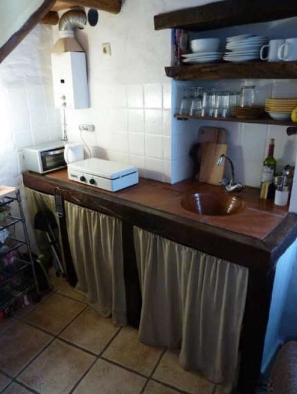 Very small but charming duplex ideal for a single or a couple in a small village in Andalucia. The terraced house is built in the typical style of 'los pueblos blancos', the 'white villages', of the Andalucian mountains with thick stone walls and small wood-framed windows which keep the place cool in the summer. Downstairs there is a kitchen-living area which includes a fridge, two-hob cooker, microwave oven, and a high quality wood-burning stove for winter evenings. Upstairs consists of a bedroom with double bed and single daybed, and bathroom with shower. The house is simple and rustic, with alcoves in the walls for candles, wood fittings to the staircase and reed ceilings.