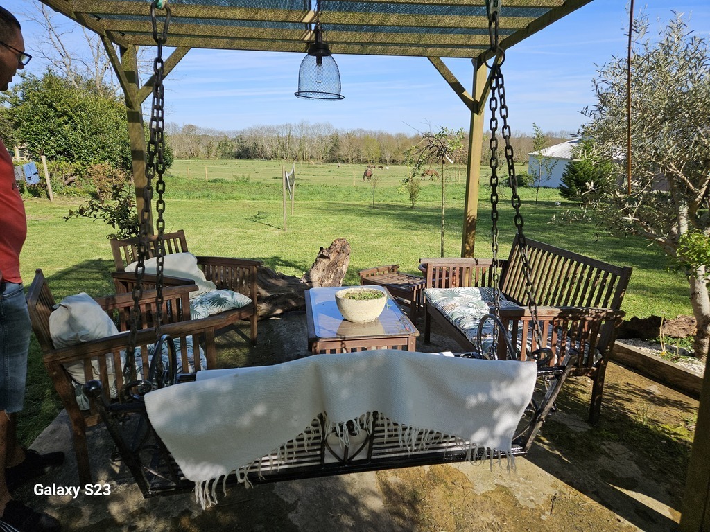 Il y a un trampoline, un grand portique, des vélos, un filet de volet. Nous mettons également à disposition des double-kayak et un paddle.
