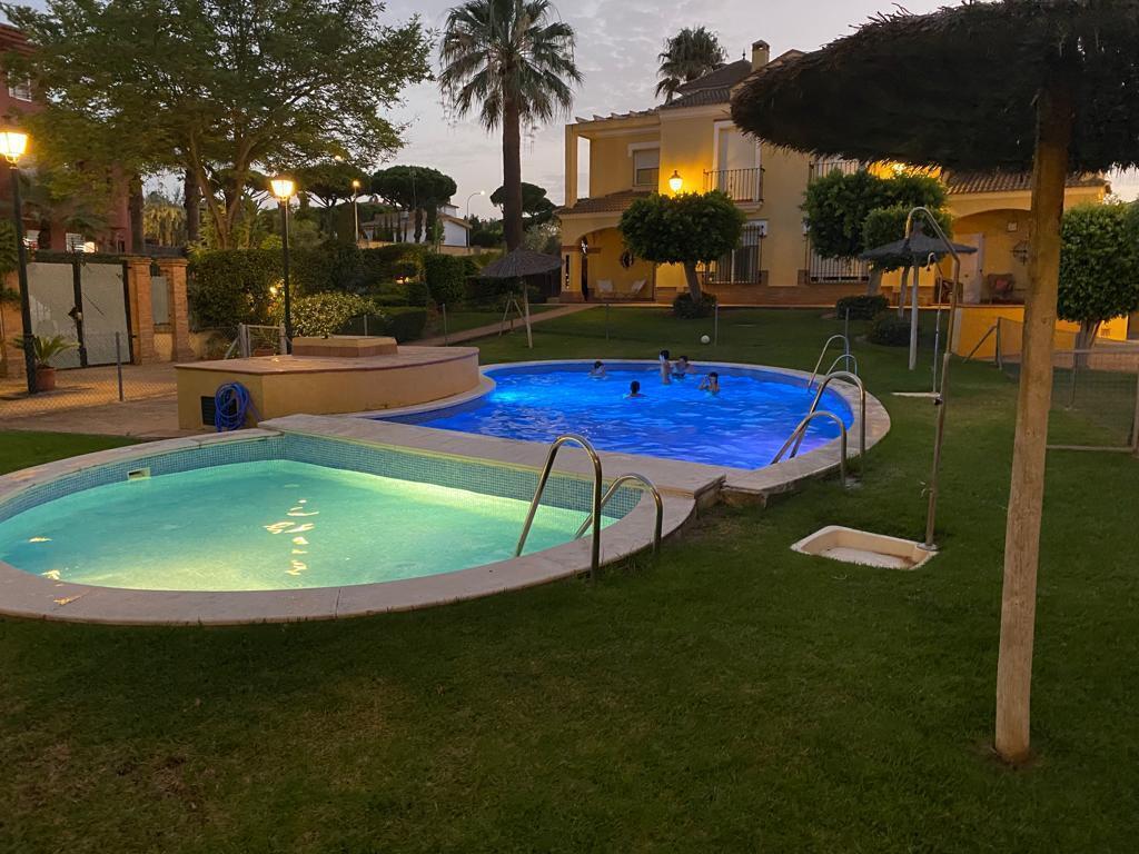 Fantastica casa unifamiliar a 5 minutos andando de la playa. La casa pertenece a una comunidad de 8 viviendas que comparten piscina, zona de juegos y aparcamiento. Es de 2 plantas con 3 habitaciones, dos baños, cocina, salon y hall, Terraza con jardin privado y porche delantero dando a la piscina.