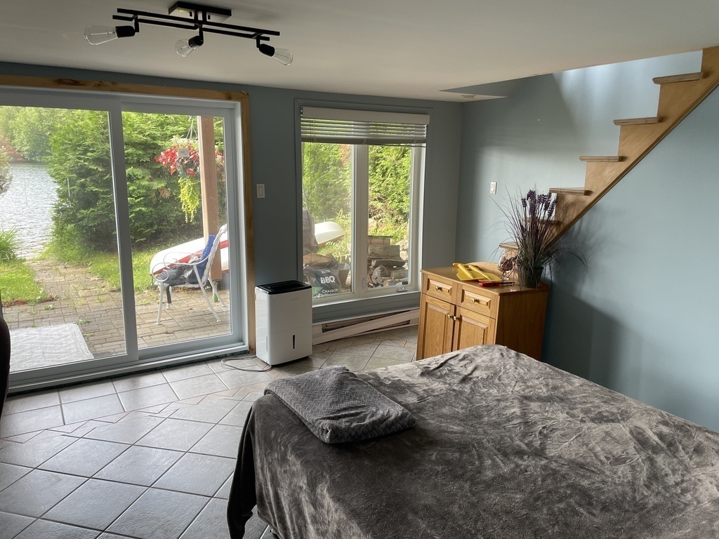 2 chambres avec lits Queen, un troisième lit au sous-sol et un divan lit pour accueillir confortablement votre famille ou vos amis