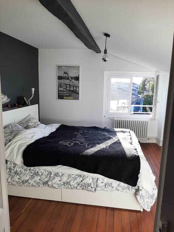 We live in a beautiful renovated farmhouse: separate kitchen, large 75 m² living room with views over the Charente Valley, and a garden with a pergola-covered terrace and access to the cycle path.