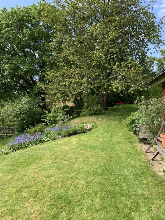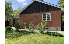 In connection with the living room you can go out into a wooden deck with table and chairs and a barbecue.Here we have a large garden.