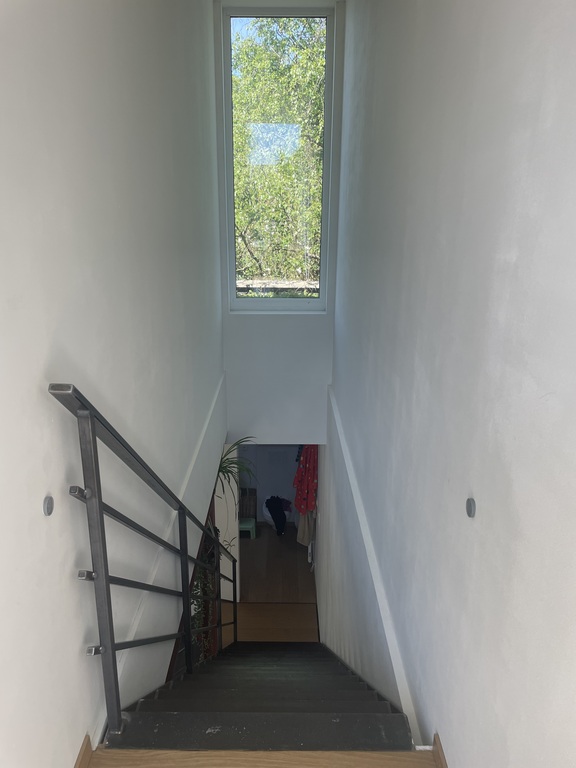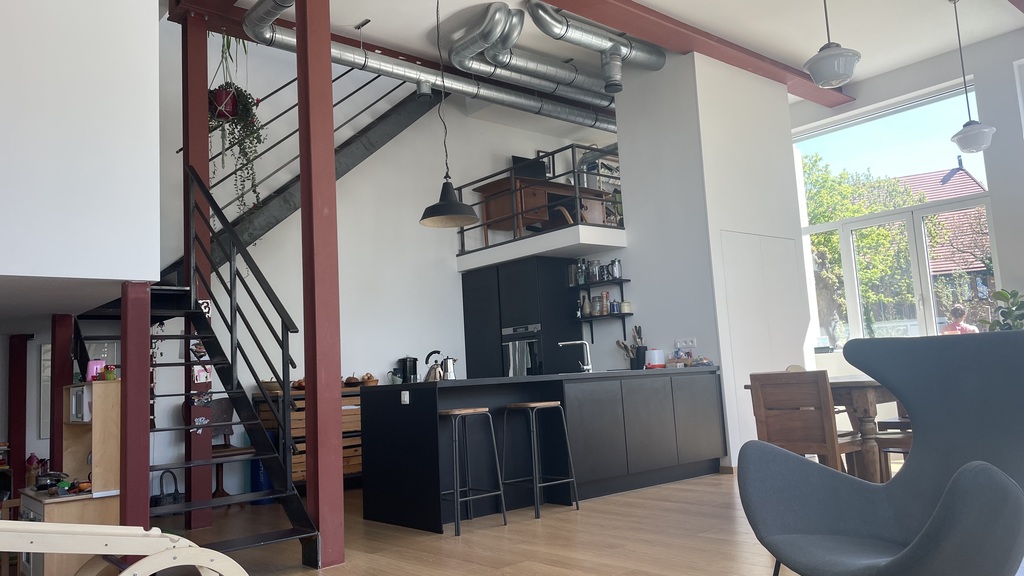 This house is a unit within a cohousing (25 units in total). It has its own small private garden, and a very large shared garden (incl. slide, swings, big sandy playing area). The house (115m2 in total) has a very spacious living room and open kitchen (70m2) with a more than 4m high ceiling, a bathroom with shower, sink and toilet, a second toilet, and two bedrooms upstairs (the childrens room is rather small but contains a bunk bed with an extra mattress that can be pulled out from beneath). The structure used to be a closter school, and was renovated into houses and apartements just three years ago. The house is almost energy neutral, and is equiped with floor cooling and air control, which means even with very warm temperatures, the house remains fresh. The house has lots of windows, so you can always enjoy enough daylight. Two kids of 6 and 2 live here, so the house comes equiped with plenty of games and toys. The neighbors of the cohousing are friendly and calm, happy to chat and give advice, but also happy to give you all the privacy and quite you need. Our bikes and kids bikes are availaible for use; many places are reachable by bike. There is space to park a car as well.