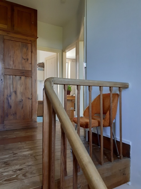 The entrance corridor (earthenware tiles of the 30's) opens on the terrace and the garden, at the back of the house.