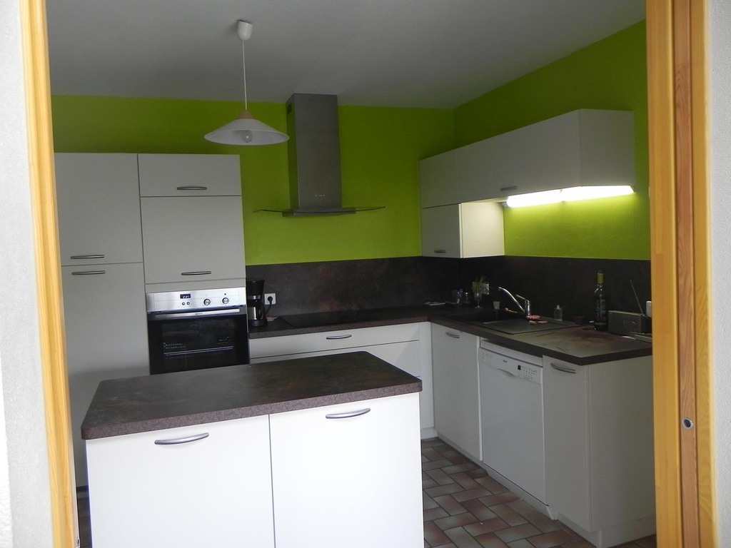 Our neighbourhood is quiet, there are many fields and vineyards in the country. The veranda is open on a lawn and an open landscape.