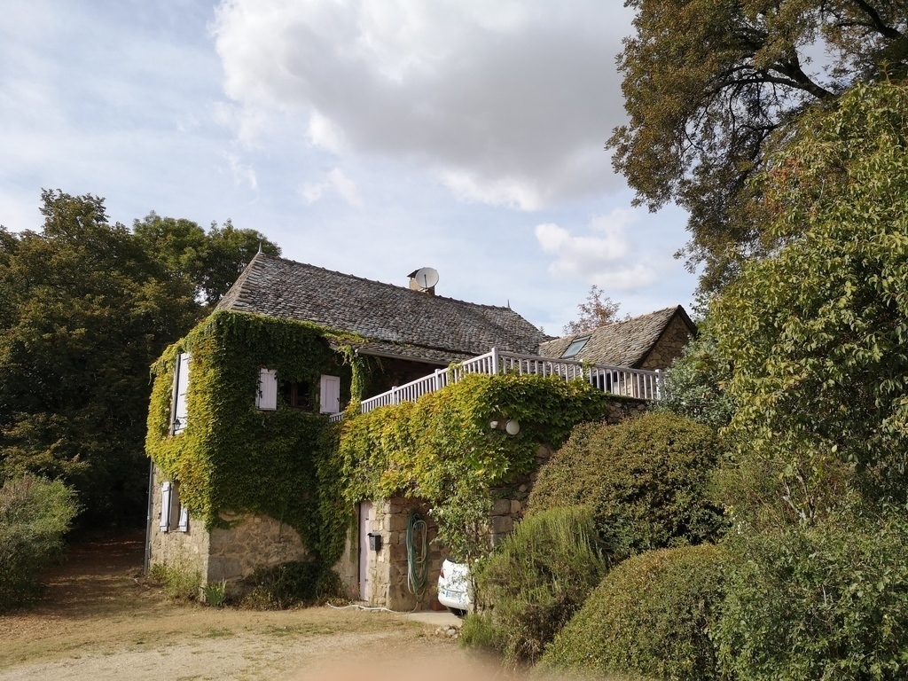 Nous habitons une jolie maison de caractère, avec toit en lauze, grande terrasse, jardin et belle vue sur Gorges du Viaur.