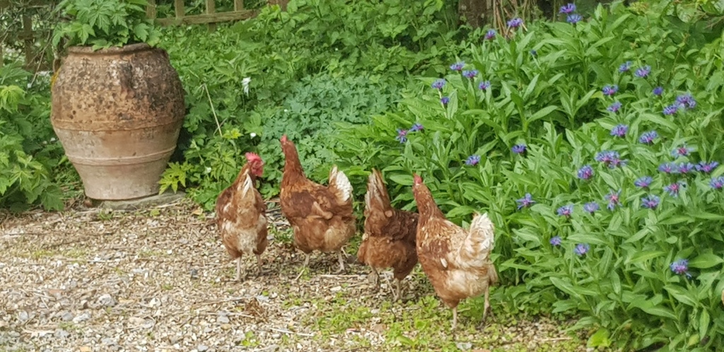 We have two delightful dogs and cat and chickens that lall ove people and need a little love.