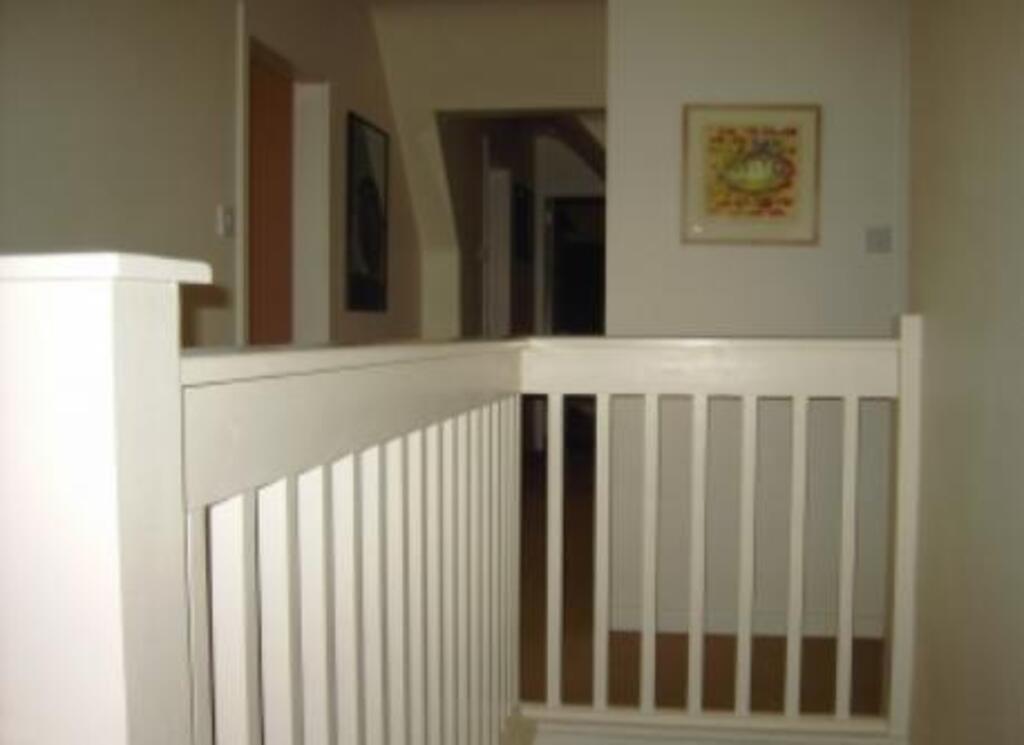 In the back garden there is a large garage with an upstairs playroom - table tennis, snooker, darts.