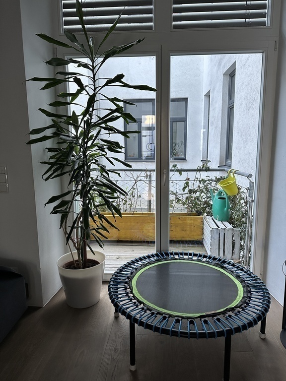 Our flat has a great balcony and we have an own garden with playground for the children and a children-house.
