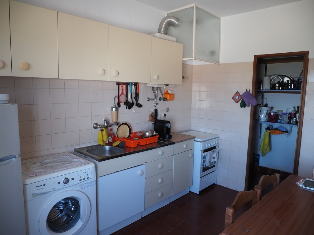 The house has two bedrooms and an office, a big living room/dinning room with a balcony and a very sunny kitchen. It is a very quiet neighborhood and there is also a children park.
