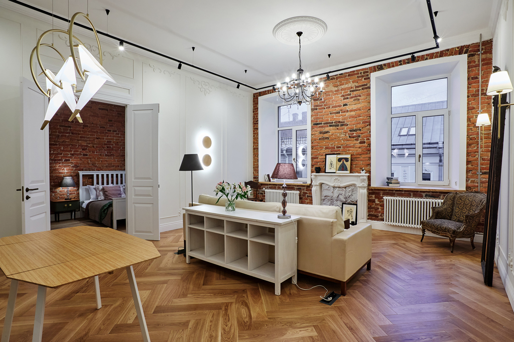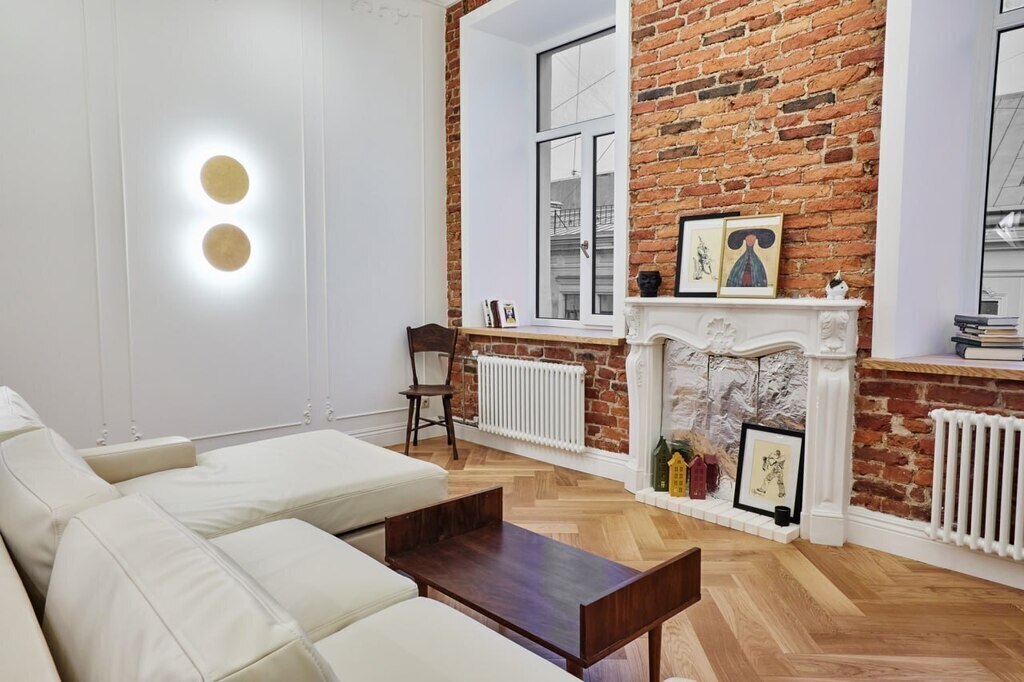 We offer you a brand new apartment in the center of St. Petersburg. It is located in a beautiful area, within walking distance of Nevsky Prospekt, St. Isaac's Cathedral, and other major attractions. The apartment has 2 bedrooms and an mezzanine, accommodating up to 7 people. There are also 2 bathrooms. Please note that the apartment has a steep staircase without an elevator and is located on the third floor.